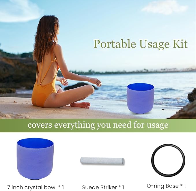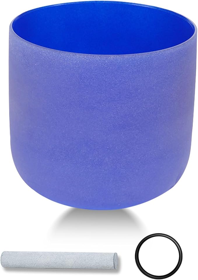 432HZ 7 Inchs Frosted Crystal Singing Bowl Set for Meditation Healing Yoga Chakra Quartz Crystal Sound Bowls with Heavy Duty Carry Case and Rubber Mallet,Suede Striker,O-rings