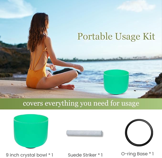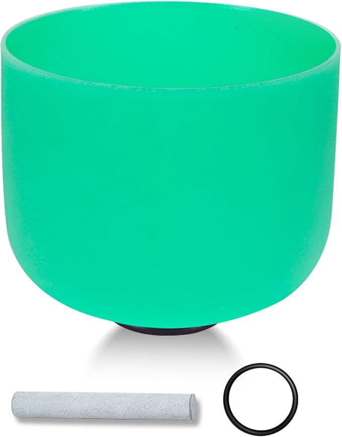 432HZ 9 Inchs Frosted Crystal Singing Bowl Set for Meditation Healing Yoga Chakra Quartz Crystal Sound Bowls with Heavy Duty Carry Case and Rubber Mallet,Suede Striker,O-rings