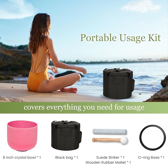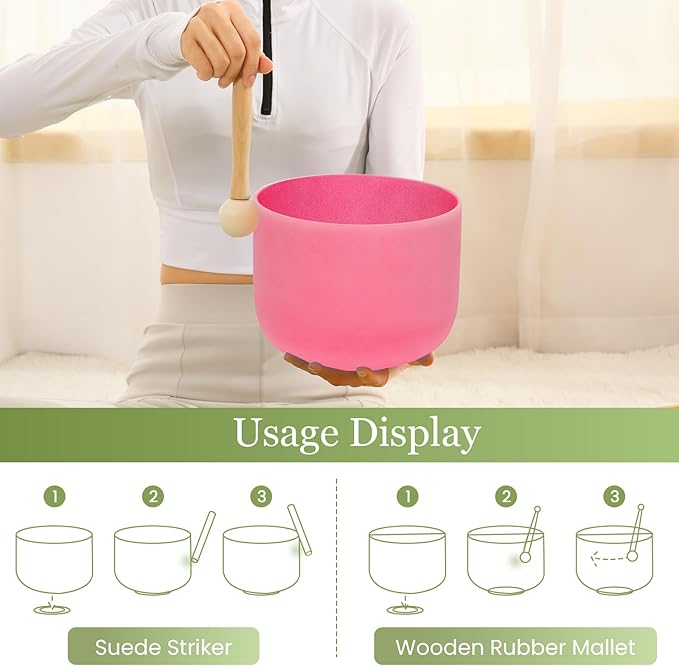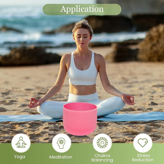 • Versatile Applications: These crystal singing bowls are ideal for sound healing, meditation, yoga, chakra balancing, stress reduction, chakra healing, spiritual and sound therapy. Whether it's a public, professional studio or a private scene, this product adapts well. With the premium textured crystal music bowl, you can enjoy a private healing journey with your family and friends anywhere, anytime.