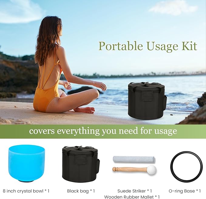• Versatile Applications: These crystal singing bowls are ideal for sound healing, meditation, yoga, chakra balancing, stress reduction, chakra healing, spiritual and sound therapy. Whether it's a public, professional studio or a private scene, this product adapts well. With the premium textured crystal music bowl, you can enjoy a private healing journey with your family and friends anywhere, anytime.