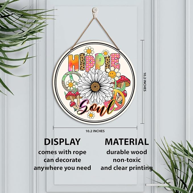 Hippie Peace Sign Wall Decor, Hippie Peace Sign for Front Door Home Living Room Bedroom, Peace and Love Sign, Boho Hippie Peace Round Wood Hanging Signs Decorations, Hipple Soul