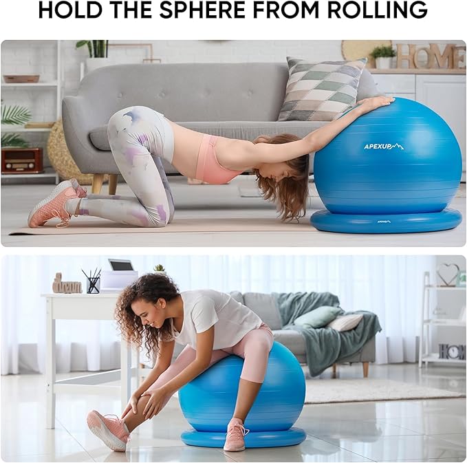 • High Load Bearing: APEXUP Exercise Ball is crafted from high-quality PVC material and meets strict safety standards; It is non-toxic, odorless, and free from harmful heavy metals; The balance ball and base feature advanced foaming technology and can support a maximum weight of 660 pounds