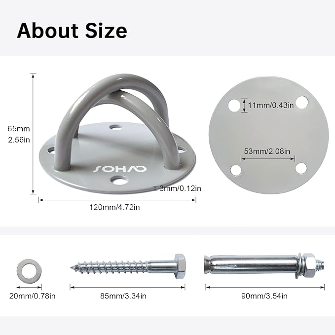 • 【Heavy Duty Material 】 SOHAO Wall/Ceiling Anchor Mount made of super durable fine iron with sturdy welded steel handles, coated to resist rust and corrosion to ensure durability.