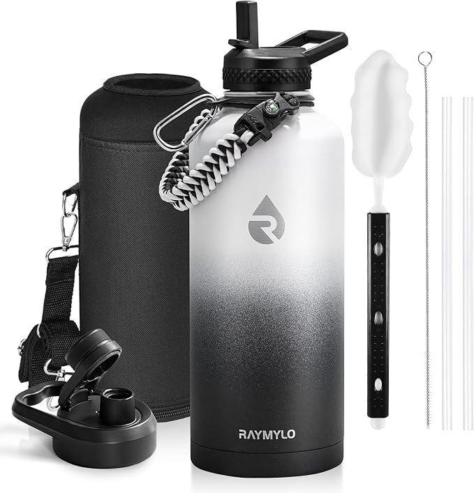 • What You'll Get: We offer Continuous After-sales Service and 100% customer satisfaction against any leakage or insulation failure. You purchase contains: RAYMYLO 87oz Water Bottle, Carrying Pouch, Straw Lid with 2 Straws & Straw Brush, Spout Lid, Paracord Handle, Bottle Brush