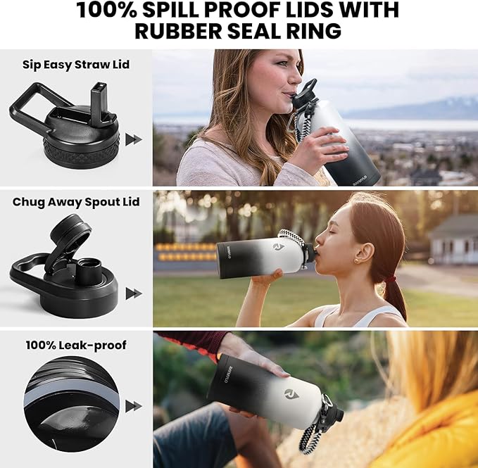 • Full Seal Leak-proof Lids: All scenario spout and straw lid with rubber seal ring ensures not a single drop leaks no matter how bumpy your journey gets.Straw lid allows for a quick refreshment without stopping you, while spout lid is great for proper hydration whenever you feel like a boost.Keeps your drinks fresh and spill-resistant on the go