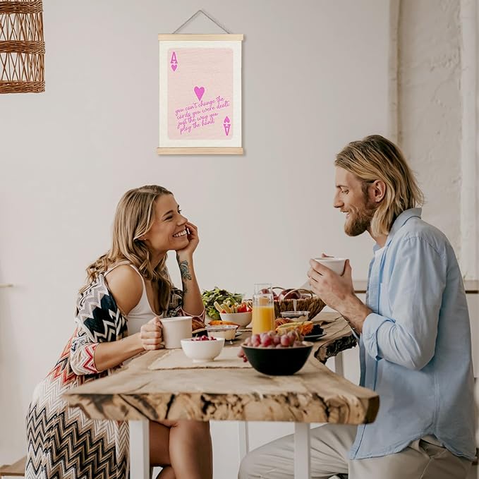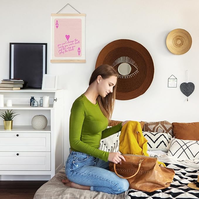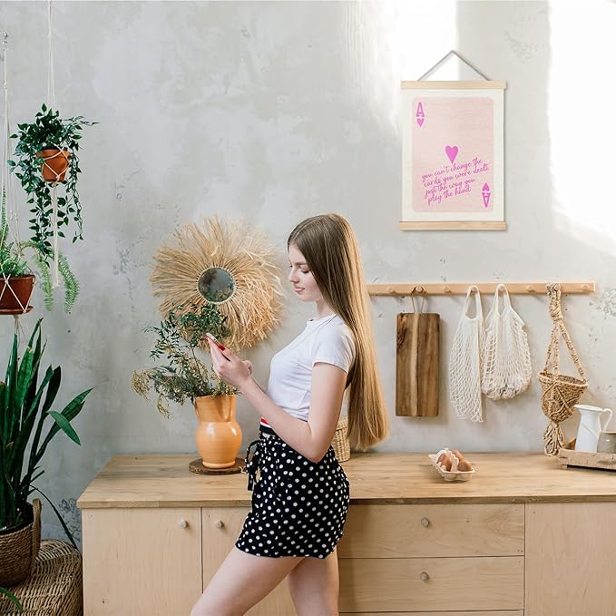 Preppy Wall Decor, Trendy Ace Card Poker Poster Wall Art, Pink Wall Art, Pink Ace of Hearts Aesthetic Canvas Wall Art Poster Hanger Frame for Home Girls Room Dorm Apartment Decor, 12x16 Inches