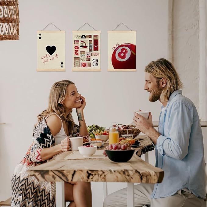 FITIE Trendy Retro Y2K Lucky 8 Ball Ace of Hearts Wall Art Set of 3, Y2K Room Decor, Funky Wall Art Decor, Funky Red Aesthetic Canvas Wall Art Poster Hanger Frame, 12x16 Inches