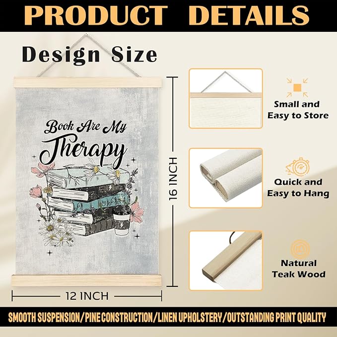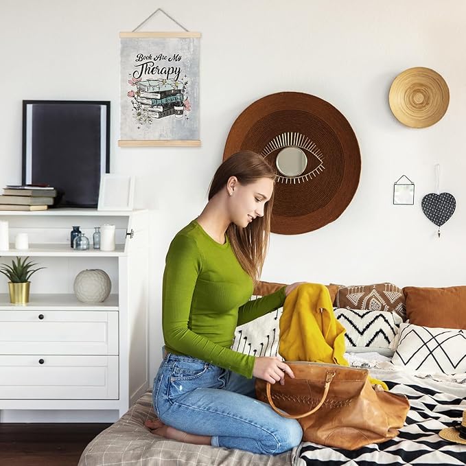 Book Wall Art,Book Posters,Bookish Decor, Library Decor,Reading Nook Decor, Vintage Floral Book Canvas Wall Art Poster Hanger Frames for Reading Room Corner Classroom Decor,12x16Inches,040-CY-GQ