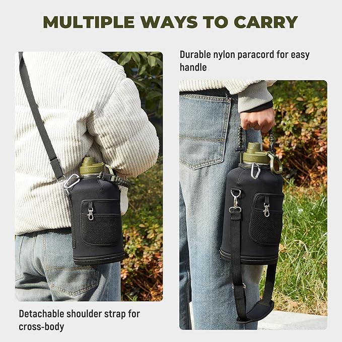 • What You'll Get: Buy 2 pack 84 oz insulated water bottle, independent carton packaging,get double accessories (Carrying Pouch, Straw Lid with 2 Straws & Straw Brush, Spout Lid, Paracord Handle, Bottle Brush). We offer Continuous After-sales Service and 100% customer satisfaction against any leakage or insulation failure