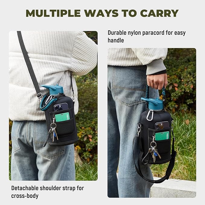 • What You'll Get: Buy a half gallon insulated water bottle, get 9 accessories (Carrying Pouch, Straw Lid with 2 Straws & Straw Brush, Spout Lid, Paracord Handle, Bottle Brush). We offer Continuous After-sales Service and 100% customer satisfaction against any leakage or insulation failure