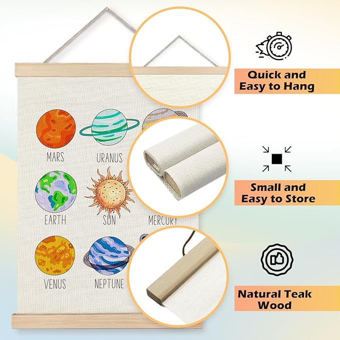 Solar System Poster Wall Art, Space Poster Wall Art Decor, Space Decor for Boys Room, Outer Space Room Decor, Planets Solar System Wall Art for Classroom Boys Kids Room Nursery Playroom, 12x16 Inches