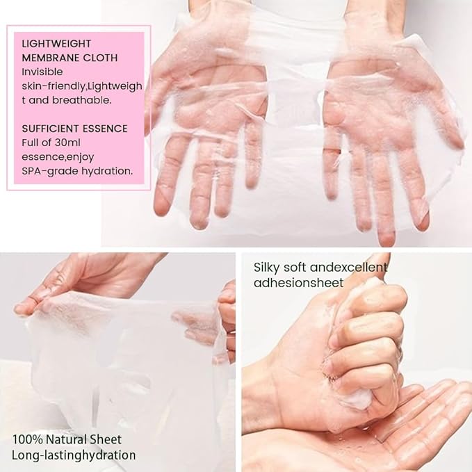• FACIAL SKINCARE SHEET MASK:This premium women's skin care mask is silky smooth,moisturizing,refreshing and has increased efficacy and adhesion to block evaporation and lock in moisture for a hydrating effect that lasts all day