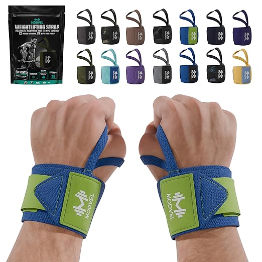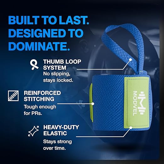 Modvel Adjustable Wrist Wraps for Gym & Lifting – Thick, Breathable Support Straps for Wrist Stability, Comfort & Grip – Ideal for Weight Training, CrossFit & Gym Workouts – Blue/Green (2-Pack)