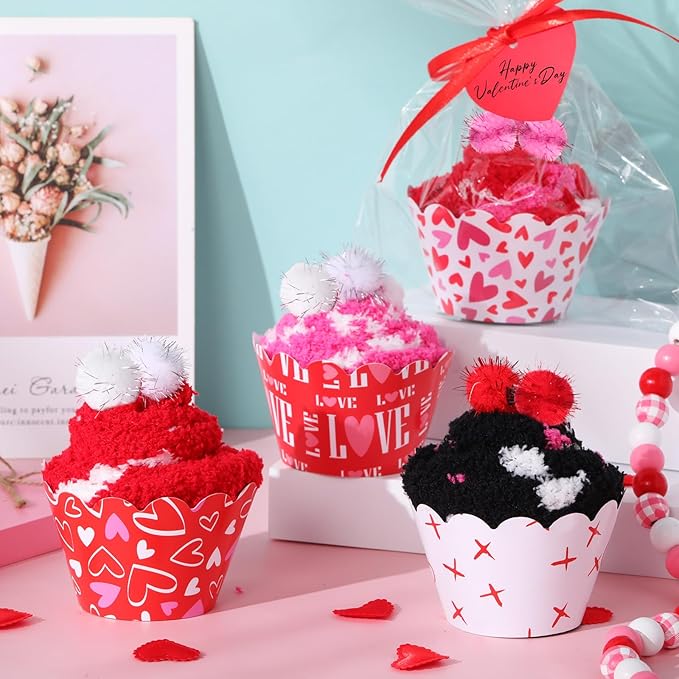• Thoughtful and Practical: you will receive 6 pairs of soft fuzzy socks, 6 cards, 6 cupcake liners, 1 pack of gifts bags, 1 roll of ribbon, an ideal gift combination allows you to experience the fun of DIY cupcake socks