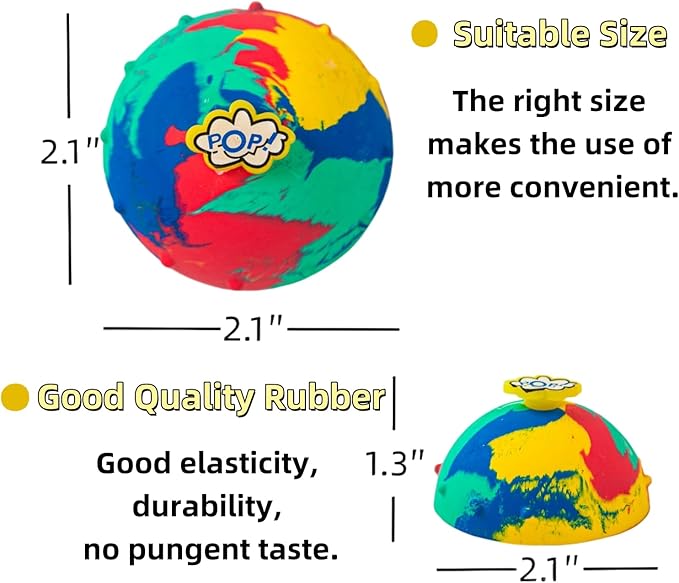 • 【IDEAL FOR PARTY FAVORS】Add a touch of fun to your next event with rubber pop up toy as party favors or gift bag fillers.Whether it's a children's birthday party,a classroom celebration,or a family reunion,these ball popper will be a hit with everyone.