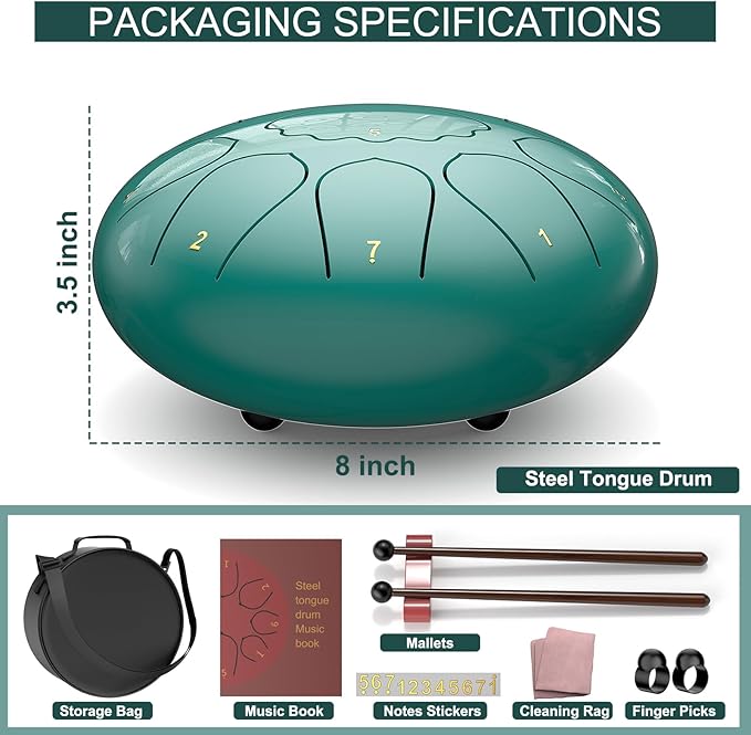 • HIGH-QUALITY CRAFTSMANSHIP: Expertly crafted, this 8-inch chakra drum for rain is made from titanium alloy and coated with paint for exceptional corrosion and rust resistance, and can withstand various weather conditions. Each steel tongue drum is hand-tuned and precisely cut to ensure achieve accurate tones and harmonies.