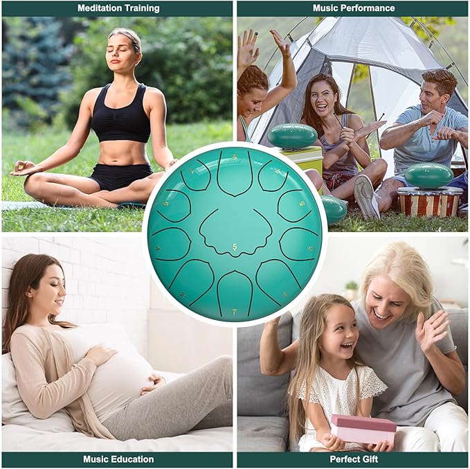 • UNIQUE GIFT FOR FRIENDS: The steel rain drum's calming sounds bring clarity and peace of mind, making it a thoughtful gift for loved ones. Easy to play with musical drumsticks or by the natural strike of rain. This tongue rain drum will be a unique present for women, or men, as Christmas, birthdays, get-well wishes, or white elephant exchanges.