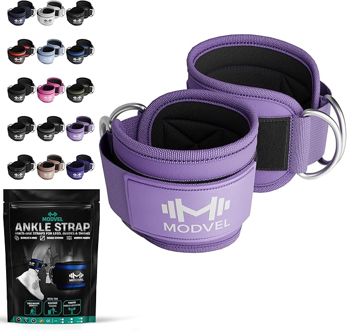 Modvel Gym Ankle Strap for Cable Machines – Glute & Leg Kickback Ankle Straps for Gym Workouts – Adjustable, Padded Support for Strength Training, Weightlifting, Rehab – Men & Women