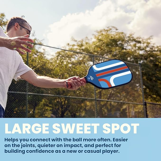 • Comfortable Grip: the pickleball paddle for women grip is 5 inches long which is long enough for you to hit the ball comfortably with both hands. The premium vegan leather handle provides a soft grip that limits stress on your hand and elbow for longer play and more accurate aces, dinks, volleys, drives, and lobs