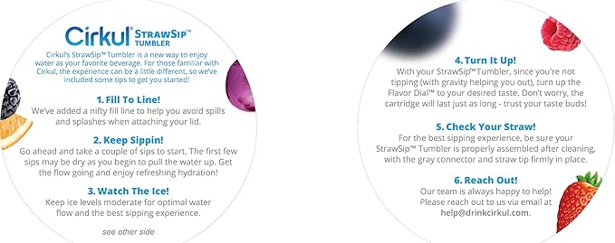• HAND WASH: Give your Cirkul Tumblers, Tumbler Lids, and Straws a thorough cleaning with warm, soapy water. This helps keep them fresh and ready for your next flavor adventure!