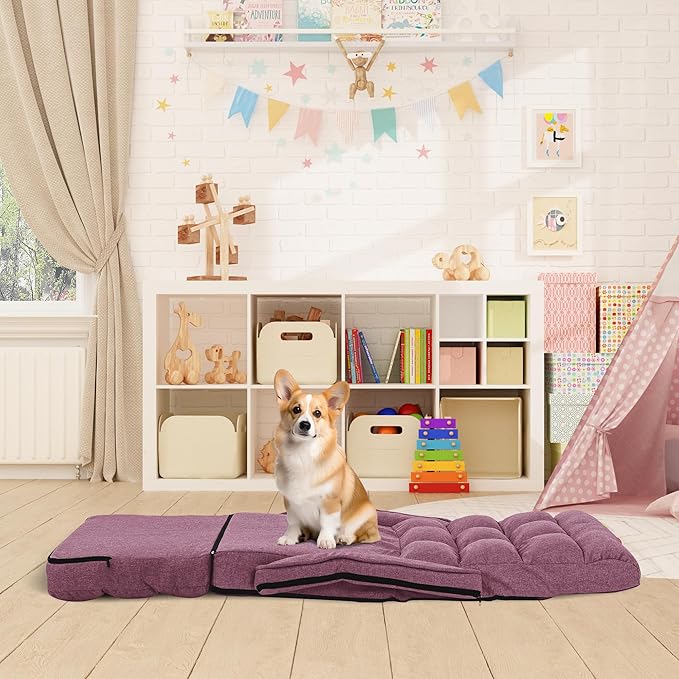 • 【Floor Chair Dimensions】Approximately flat size: 65.75”(L)x 20.08”(W); 90°folded size: 18.7”(D) x 20.08”(W)x 27.95”(H); Lumbar pillow measures 17.91"(L) x 8.27"(W). Adopted purple color fabric, this floor chair is easy to match your indoor surroundings. There may be some measure difference and color difference due to light and screen display, which is can't tatally avoidable. Please kindly understand.