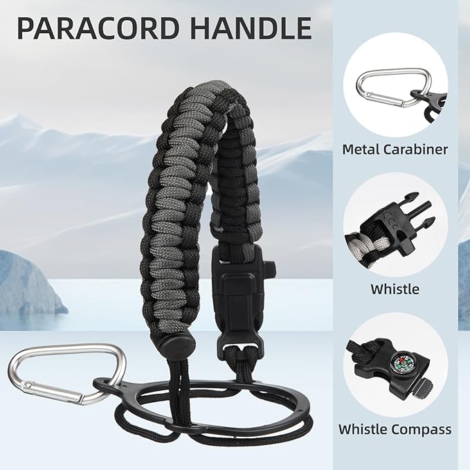 • The large capacity gallon water jug comes in various sizes, including 50 oz, 64 oz, 87 oz, and 128 oz, with a range of colors to choose from according to your need. All sizes of bottles equip with a paracord handle and a pouch for easy carrying