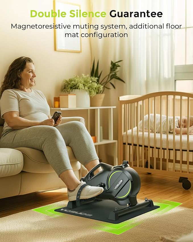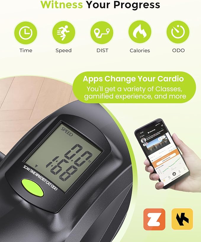 • DIGITAL MONITOR: screen tracking of workout data: heart rate, mileage, speed, calories. Under desk bike pedal exerciser can also be Bluetooth connected to KINOMAP and Zwift, so that you can easily grasp your body data and follow tutorials to exercise
