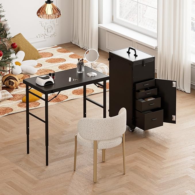• Portable and Easy to Move: Equipped with 4 lockable swivel wheels, a handle, and a retractable trolley handle, this unit weighs only 43 lbs. Even when fully loaded, it can be moved easily, making it perfect for nail technicians on the go—lightweight and convenient for travel