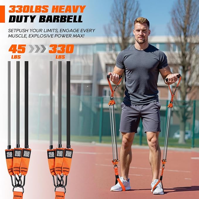 • 【Unleash Your Strength Potential】Our Pilates bar set is no ordinary fitness equipment. Boasting 6 exercise bands - 2 each of 35lb, 45lb, and 55lb tubes, it delivers a staggering 270LBS of combined resistance. Made from natural latex, these bands are not only highly elastic but also incredibly tear - resistant, ready to endure your most intense daily workouts. Whether you're a fitness novice or a seasoned pro, this set can be customized to match your strength level precisely.