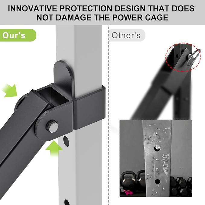 • 【INNOVATIVE CONNECTION DESIGN】The landmine belt squat attachment features an innovative design that enhances stability and durability. The support arm design prevents contact with the training frame, avoiding damage and scratches