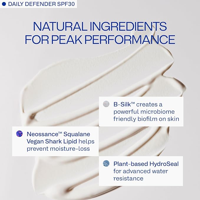 • SUPERIOR SUN PROTECTION: The Daily Defender SPF 30 offers powerful, broad-spectrum UVA/UVB defense, while also protecting against blue light and pollution. This lightweight sunscreen is 40 minutes water-resistant, making it ideal for outdoor activities.