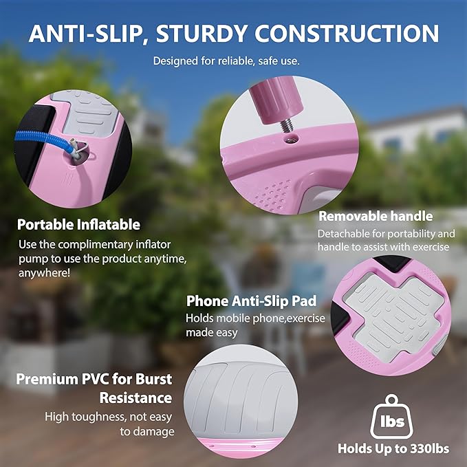 ZPZ Half Balance Ball Trainer, Compact Portable Inflatable Exercise Yoga Stability Ball with App-Based Balance Game, Pilates Resistance Bands, Foot Pump, Non-Slip Base for for Full-Body Workouts, Home Gym & Easy Storage (18.3 Inch Pink)