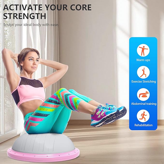 • 【VERSATILE FITNESS BALL】: This multifunctional half-ball fitness ball is perfect for a wide range of exercises, including planking, balance training, yoga, and strength workouts. Whether you’re targeting your core, improving flexibility, or enhancing stability, this ball provides a complete solution for your fitness routine.