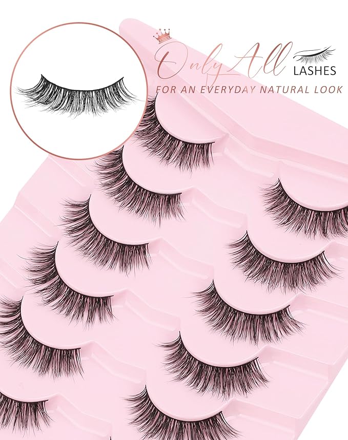 Onlyall Natural Lashes Wispy Lashes Natural Look False Eyelashes Natural Flared Eyelashes False Eye Lashes Soft Fluffy Lashes 7 Pairs D75
