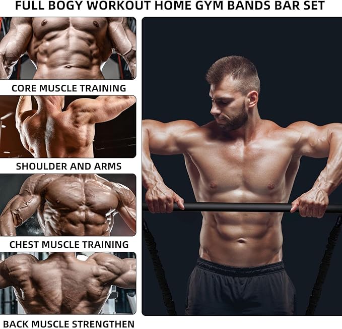 • [Suitable for Various Exercises]: Our workout band bar set supports for many exercises, such as bicep curls, stretching, squats, yoga, Pilates, chest presses and more. A wide range of uses for the bar set helps you to exercise your muscles in different parts of your body, which help you become healthier and stronger