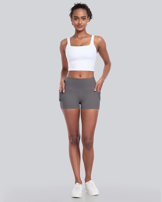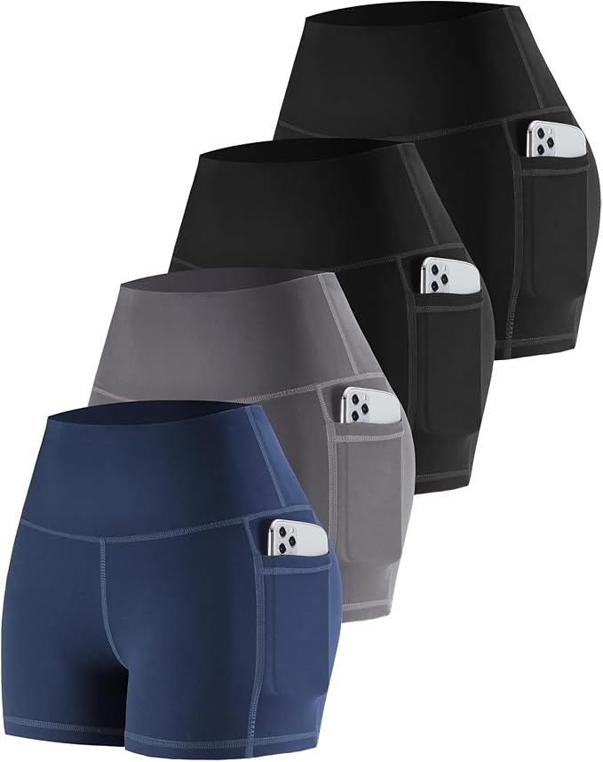 CHRLEISURE Womens Biker Yoga Shorts with Pockets: High Waisted Tummy Control Spandex Workout Athletic Gym Shorts 4 Packs