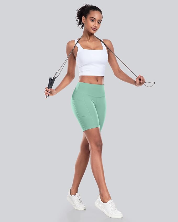 CHRLEISURE Womens Biker Yoga Shorts with Pockets: High Waisted Tummy Control Spandex Workout Athletic Gym Shorts 4 Packs