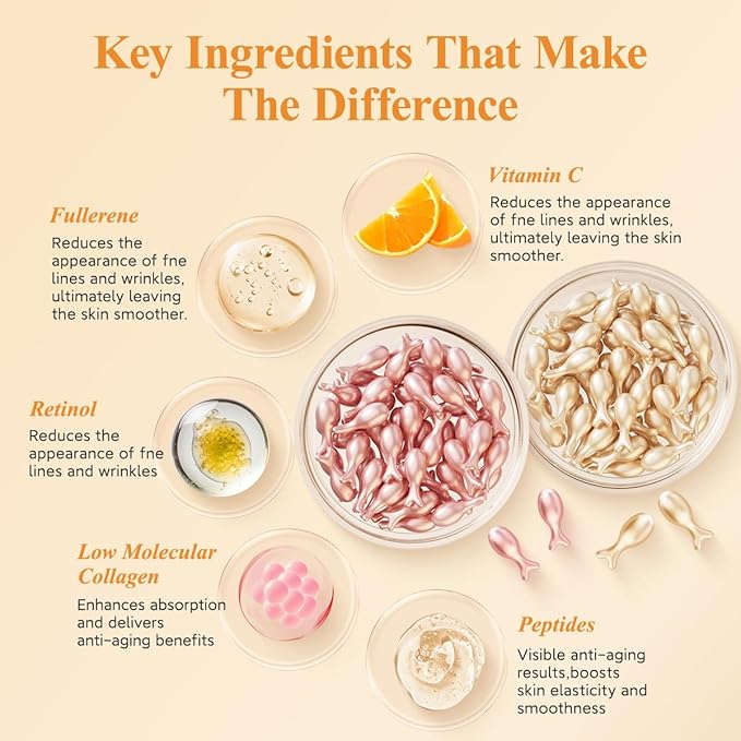 • 【Complete Day & Night Care--Day C Night A 】 Vitamin C serum capsules smooth, hydrate, and protect by day; Retinol serum capsules repair, firm, and smooth overnight for 24-hour anti-aging results