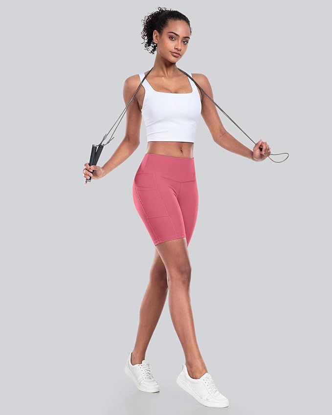 CHRLEISURE Womens Biker Yoga Shorts with Pockets: High Waisted Tummy Control Spandex Workout Athletic Gym Shorts 4 Packs