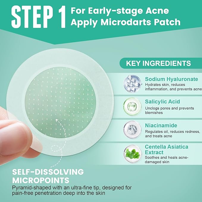 • 【Rapid-Action Microdarts】The 9 microdarts patches quickly reduce pimple size and redness. They deliver active ingredients directly, minimizing scarring in just 4 - 6 hours.