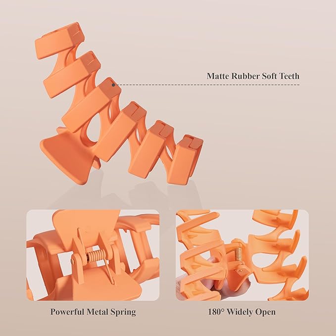 • ANTI-SLIP DESIGN: The claw clip has a certain thickness that is not easy to break, and will not hurt the hair. The lock tooth design of the anti-slip grip can greatly handle any thick or thin hair. It is suitable for thick, thin, curly or straight hair.