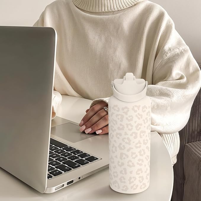 Leopard Water Bottle 32oz Stainless Steel Vacuum Insulated with Lid, Leopard Print Water Bottles for Gym Sports Travel Outdoor, Gifts for Women Girls Ladies Birthday Christmas
