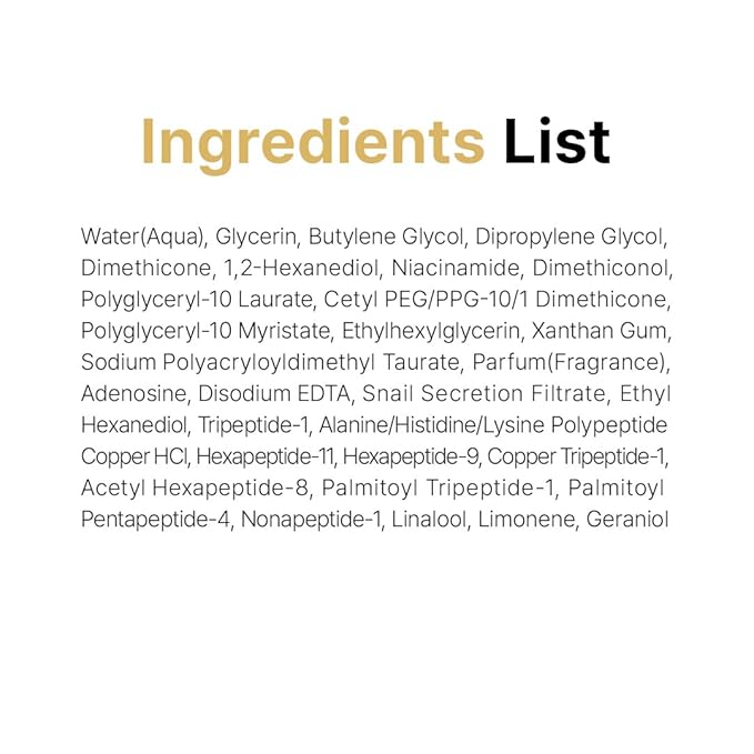 • [A Powerful Anti-Aging Blend]: Not only enriched with Peptides and Snail Secretion Filtrate, but also formulated with well-known skincare ingredients like Niacinamide, Glycerin, Adenosine, and Ceramide NP, this ampoule deeply boosts skin textures, improves fine lines & wrinkles on your skin and promotes a firmer, more youthful glow.