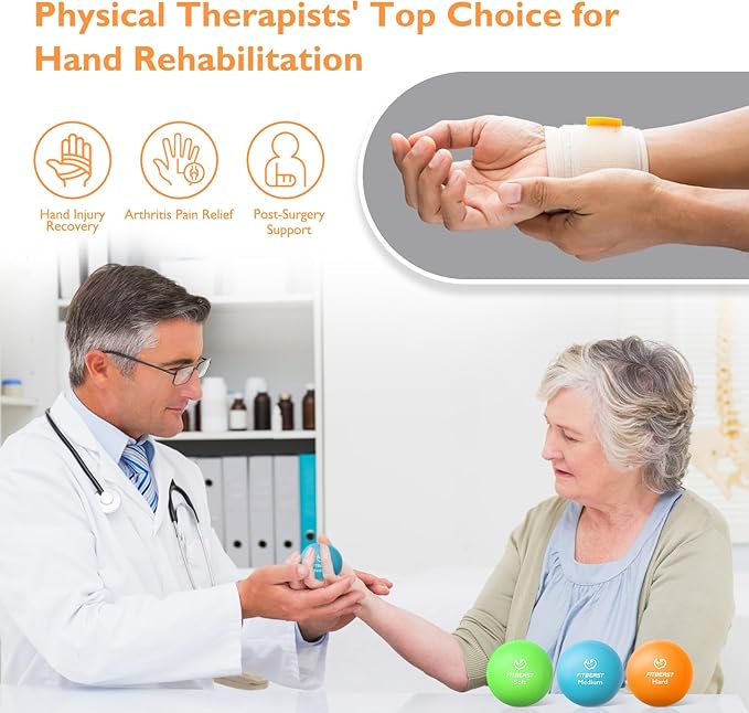 • 𝗦𝘁𝗿𝗲𝗻𝗴𝘁𝗵𝗲𝗻 𝗛𝗮𝗻𝗱𝘀, 𝗝𝗼𝗶𝗻𝘁𝘀, 𝗮𝗻𝗱 𝗠𝘂𝘀𝗰𝗹𝗲𝘀:Each squeeze of our squeeze ball improves hand, finger, and forearm strength. Especially useful for individuals recovering from carpal tunnel, arthritis, or surgeries, this set aids in hand rehabilitation and muscle development, supporting long-term health and mobility.