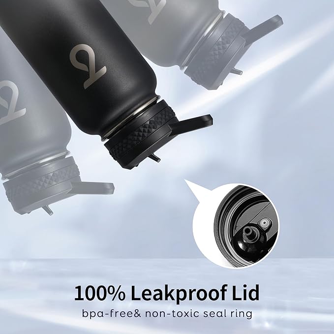 • Leakproof Triple Lids: Each lid comes with a rubber seal ring to ensure 100% leakproof. Sip through the flip-up straw lid, drink like a fish through the spout lid, or refill ice cubes through the wide mouth, you are in good hands with Trebo 32 oz water bottle.