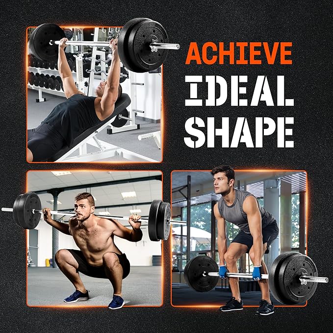 • DIAMOND KNURLING GRIP: Diamond-patterned knurling grip offers a secure non-slip grip for barbell, even during intense workouts; 2 star collars are included to prevent weights sliding off, ensuring stable lifts for weight bar set with weights