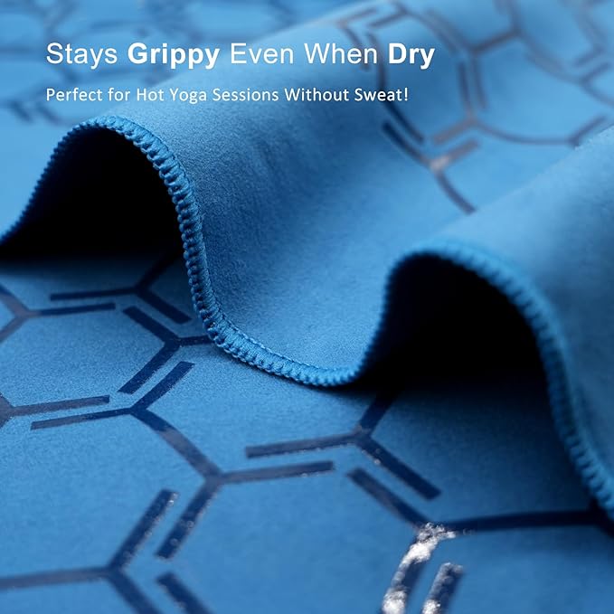 • NON-SLIP & SKID-LESS: The yoga towel, with its honeycomb design, ensures a slip-free practice. Made of soft microfiber, it features a double-sided embedded silicone pattern that grips the mat or floor, providing a smooth, non-slip surface without bumps. This textured surface maintains traction even when wet, allowing you to focus on your practice.