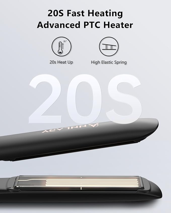 • Fast Heating & Dual Voltage: Featuring a PTC heater that heats up in just 20 seconds, this flat iron saves you time while reducing hair damage. With dual voltage support (100-240V), 60-minute auto shut-off, and a 360° swivel cord, it’s perfect for home and travel use.