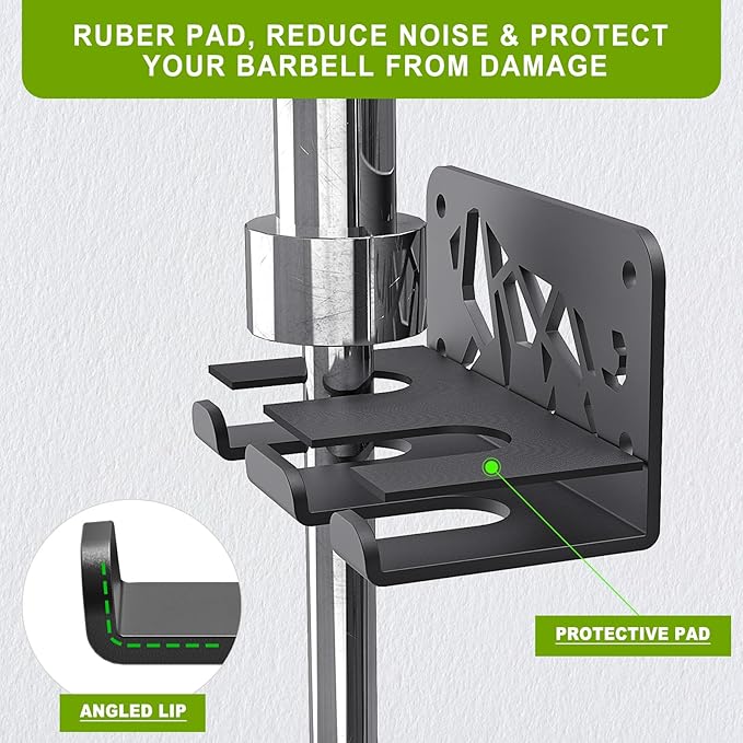 • 【Protective Features】All hooks are properly spaced to avoid overlapping, protecting your equipment and rack from scratches. Rubber protective pads have been added to the hooks to reduce noise and protect your barbell from scratches