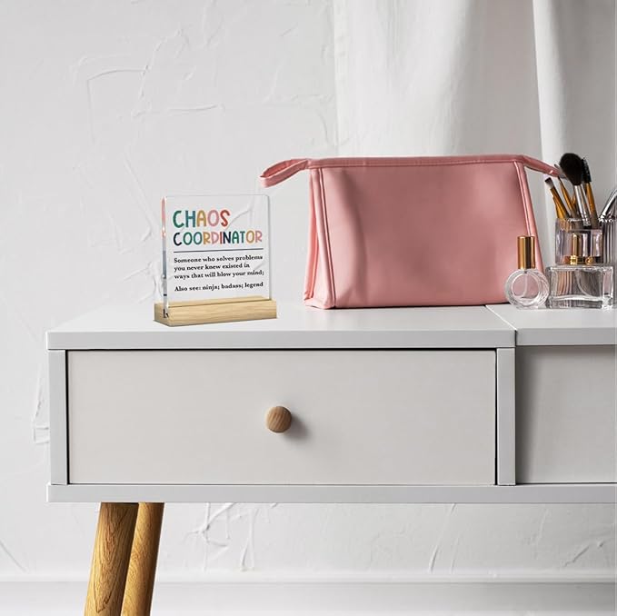 Chaos Coordinator Gift, Gift for Coworker Accounting Boss School Teacher Counselor Nurse Office Decor, Employee Appreciation Decorations, Funny Cute Humor Acrylic Desk Decoration for Office